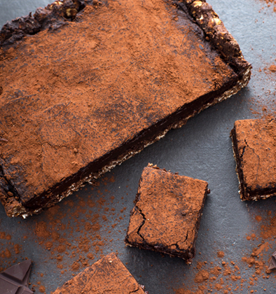 Mazurek czekoladowo-orzechowy z awokado z konfiturą z czarnej porzeczki