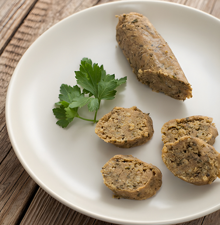 SKŁADNIKI: 480 g ugotowanej białej fasoli, 3 cebule, 3 ząbki czosnku, 250 g kaszy jaglanej, 4 łyżki sosu sojowego, 3 łyżki nieaktywnych płatków drożdżowych, 2 1/2 łyżki mielonego siemienia lnianego, 1 łyżka octu jabłkowego, 2 1/2 łyżeczki agaru, 4 owoce jałowca, 5 liści laurowych, 4 ziarna ziela angielskiego, 1 goździk, 4–5 łyżek majeranku, 3 łyżki suszonego tymianku, 1 1/2–2 łyżeczki wędzonej słodkiej papryki, 2 łyżeczki lubczyku, 2 łyżeczki cząbru, 1 1/2 łyżeczki mielonego kminku, duża szczypta gałki muszkatołowej, sól i pieprz do smaku, olej do smażenia.