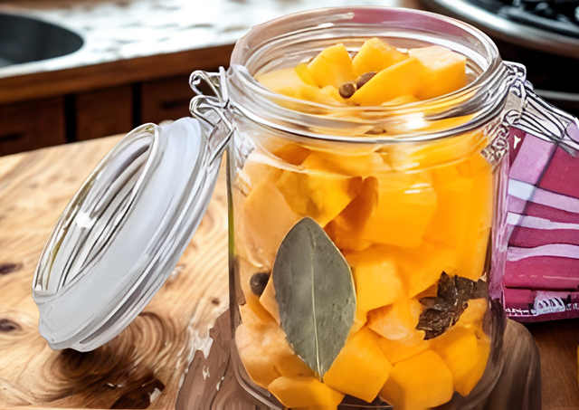 Zaglądając do „Wielkopolskiego Kucharza”, znajdziemy tylko jeden przepis w dziale przetworów. Do złudzenia przypomina mi on recepturę mojej babci Anastazji, która przygotowywała tzw. kompot z dyni, który uwielbiałem. Uwielbiałem, bo nikt, albo prawie nikt, już go nie robi w moim otoczeniu. Pozostał tylko w pamięci. Maryan podaje, że najpierw trzeba „korbala” (bo takiej formy używa) pokroić w kostkę lub okrągłą łyżeczką wykroić kulki. Następnie sparzyć wrzącym octem i odstawić na 4 godziny. Kolejną czynnością było odcedzenie i osuszenie. A dalej „na 2 funty korbala, bierze się 1,5 funta cukry, zalewa 2 kieliszkami wina lub wody i zagotować na syrop”. Potem gotuje się korbala do momentu, aż będzie przezroczysty. Tu był kluczowy moment. Moja babcia z drżeniem czekała na efekt, bo czasami niektóre dynie w mgnieniu oka rozgotowywały się, a przecież miały mieć kształt kostki lub kulek. Dlaczego? Nie wiadomo. Taki urok dyni, mawiała mocno zdenerwowana babcia. Po przestygnięciu wkładało się dynię do słoja, przesypując płatkami migdałów, skórkami cytrynowymi, drobno łupanym cynamonem i kilkoma goździkami. Syrop gotowało się do zgęstnienia i wlewało do słoi. Zimą babcia podawała do mięsa albo w salaterkach jako kompot. Pyszota!