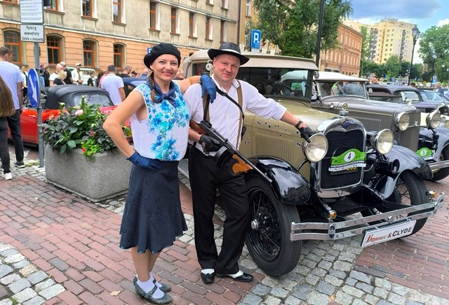 LM: To była walka. Byliśmy cały czas w trasie. Rolą pilota oprócz nawigowania było ciągłe przeliczanie czasów, aby trafić co do minuty w odpowiednie nieznane nam punkty kontrolne. Nie byliśmy przygotowani aż na taki wysiłek, ale dojechaliśmy do mety z odrobiną spóźnienia, bo tuż przed Pragą strzeliła nam opona. Trzeba było wyjąć wszystkie bagaże (bo woziliśmy wszystko ze sobą), podnieść samochód, zmienić i znowu załadować – a to wszystko w strojach z epoki.