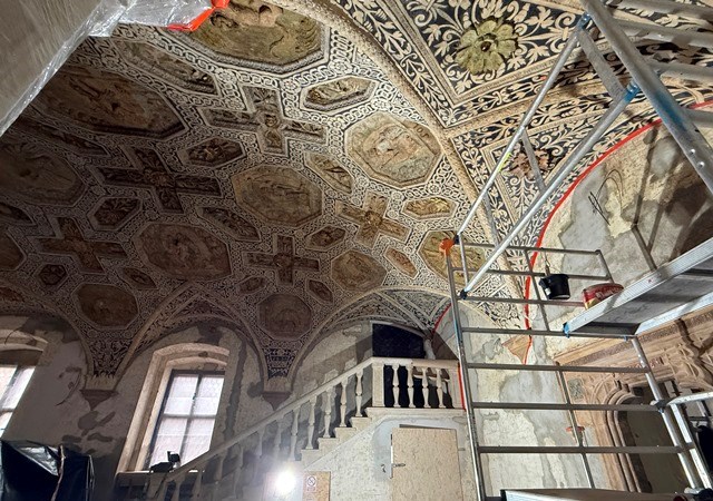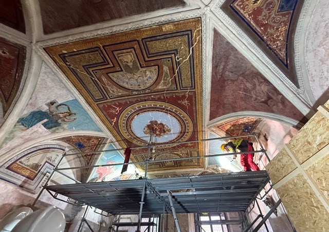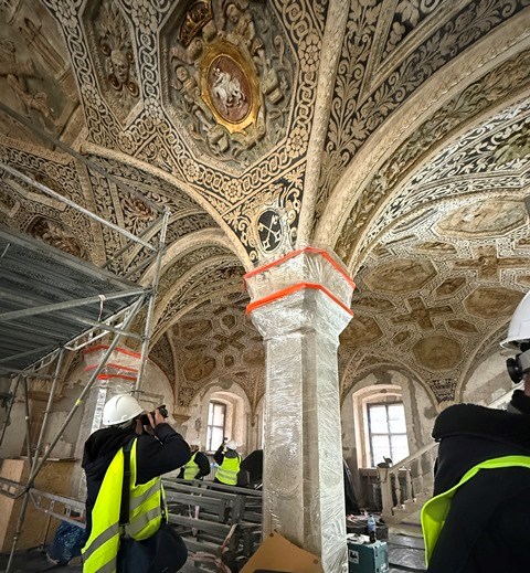 – Niestety, mimo zachowanej dokumentacji, jest ona czarno-biała – dodaje Agnieszka Kunicka-Goldfinger, konserwator, zajmująca się tym projektem. – Nie pozwoliłaby na rzetelną rekonstrukcję malarstwa, a nowoczesna konserwacja nakazuje szanować to, co dotrwało. Dlatego zdecydowaliśmy: odsłaniamy odnaleziony podział kasetonowy i eksponujemy go jako świadectwo dziejów, bez wprowadzania współczesnych domysłów.