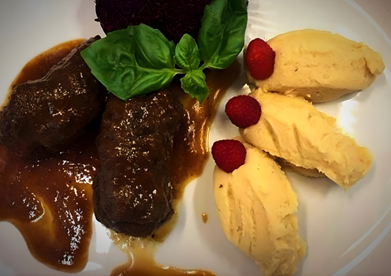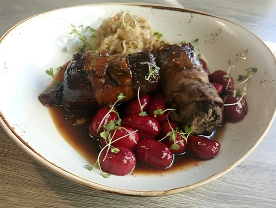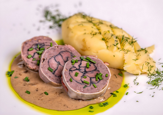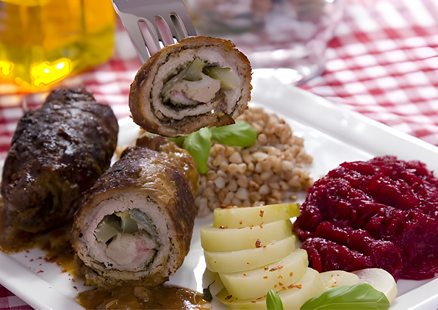 Przygotowanie: Mięso rozbijamy na cienkie płaty, smarujemy musztardą. W środku umieszczamy boczek, ogórek, cebulę oraz kawałek pokruszonego miąższu chleba razowego lub skórkę, może być nawet podsuszona. Chleb podczas długiego duszenia rozpadnie się całkowicie, nadając mu głęboki, winny i lekko korzenny posmak. Obsmażamy roladki na złoto na tłuszczu i dusimy pod przykryciem do całkowitej miękkości (wołowinę ok. 2 h, wieprzowinę ok. godziny). Dla zagęszczenia dodajemy kawałki razowego chleba. To danie pełne obfitości, które doskonale komponuje się z modrą kapustą i kluskami, tworząc niezapomnianą kompozycję smaków.