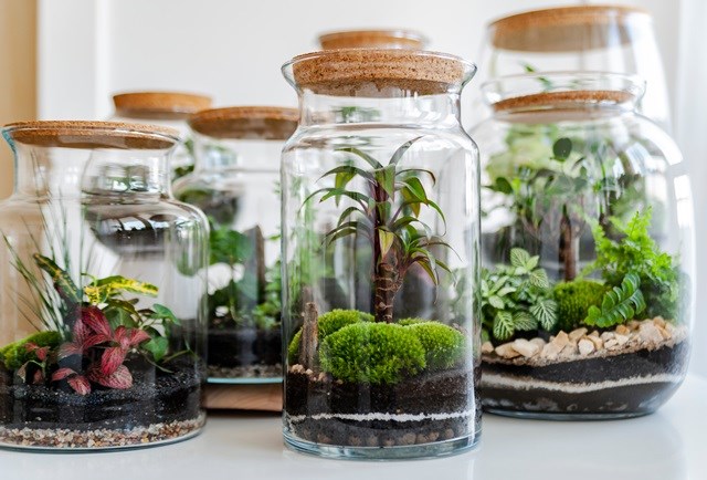A teraz coś naprawdę magicznego – ogród w słoiku, zwany także terrarium roślinnym. To miniaturowy, zamknięty ekosystem, w którym rośliny rosną w szklanym pojemniku, praktycznie bez ingerencji z zewnątrz. Raz założone terrarium może funkcjonować latami, samodzielnie utrzymując cykl wody i składników odżywczych.
